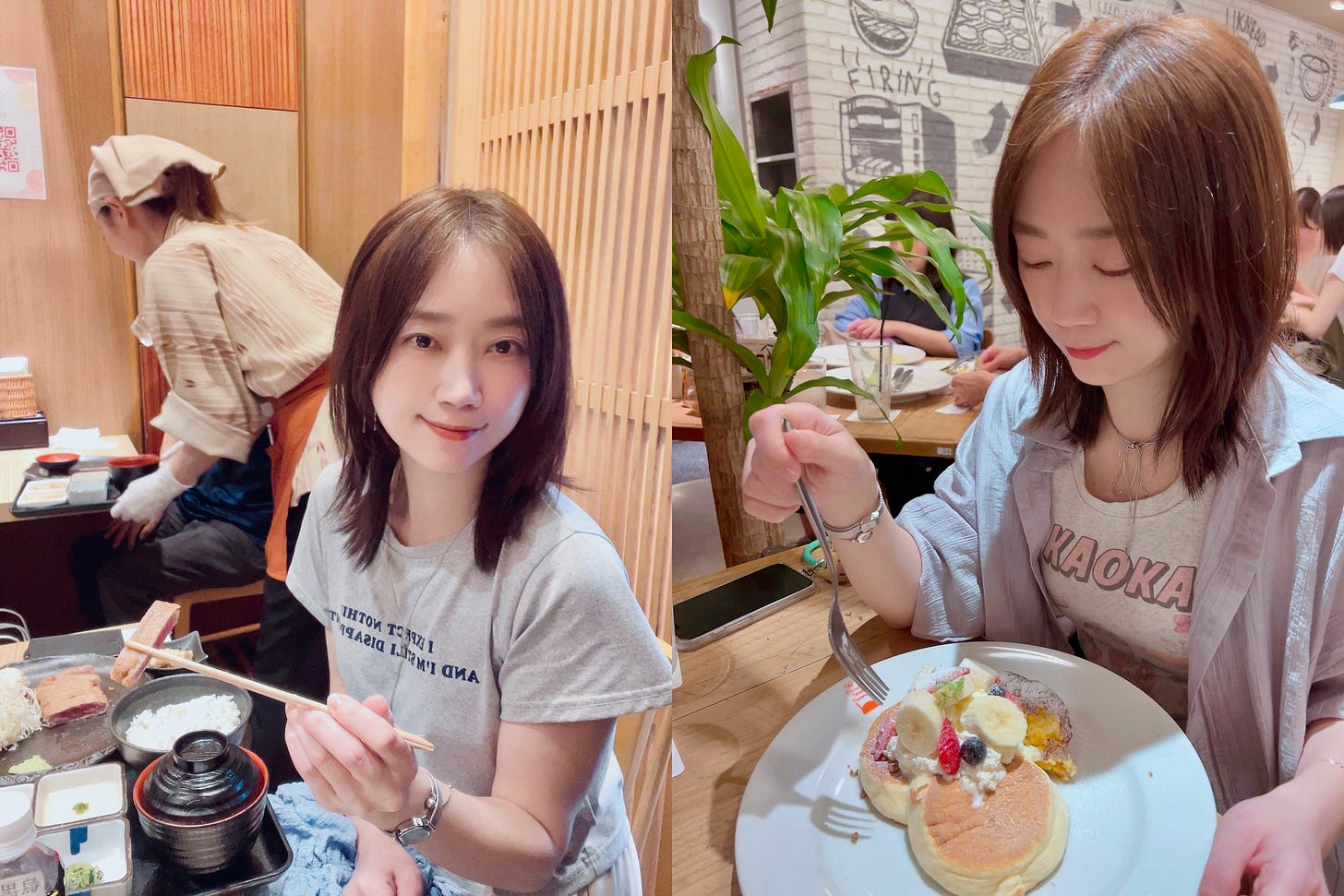 左為淺草寺對面的 牛かつ。右為秋葉原 The French Toast Factory 的招牌香蕉鬆餅。是少數幾家沒有踩到雷的店家