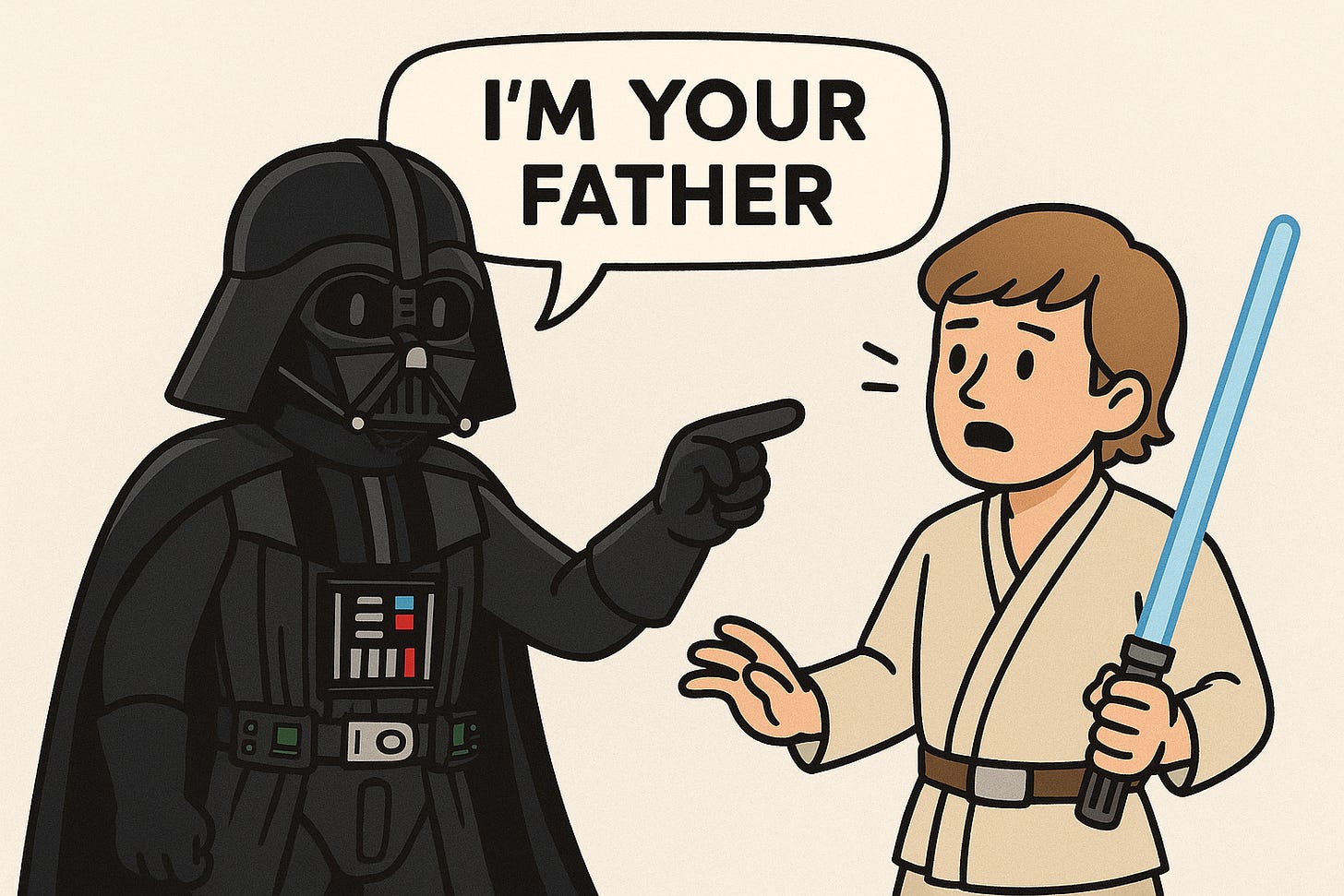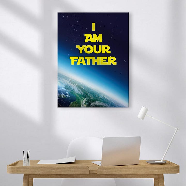 這句經典台詞出自 1980 年的《星際大戰五部曲:帝國大反擊》。在決戰時刻,反派 達斯·維達 向主角 路克 說出那句震撼人心的揭露:「No, I am your father.」