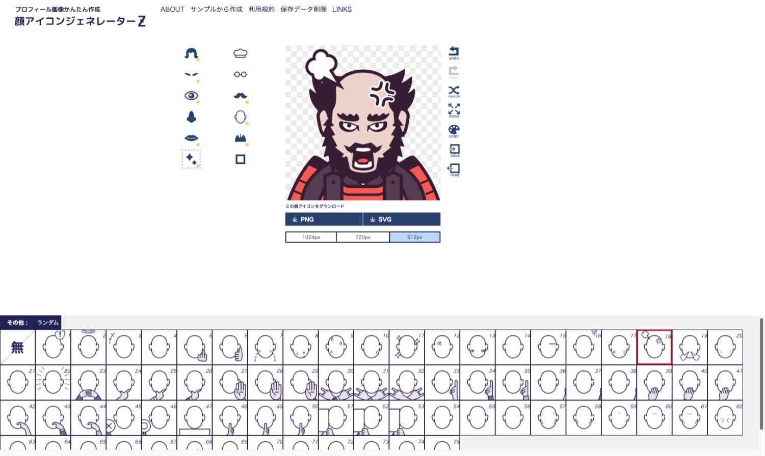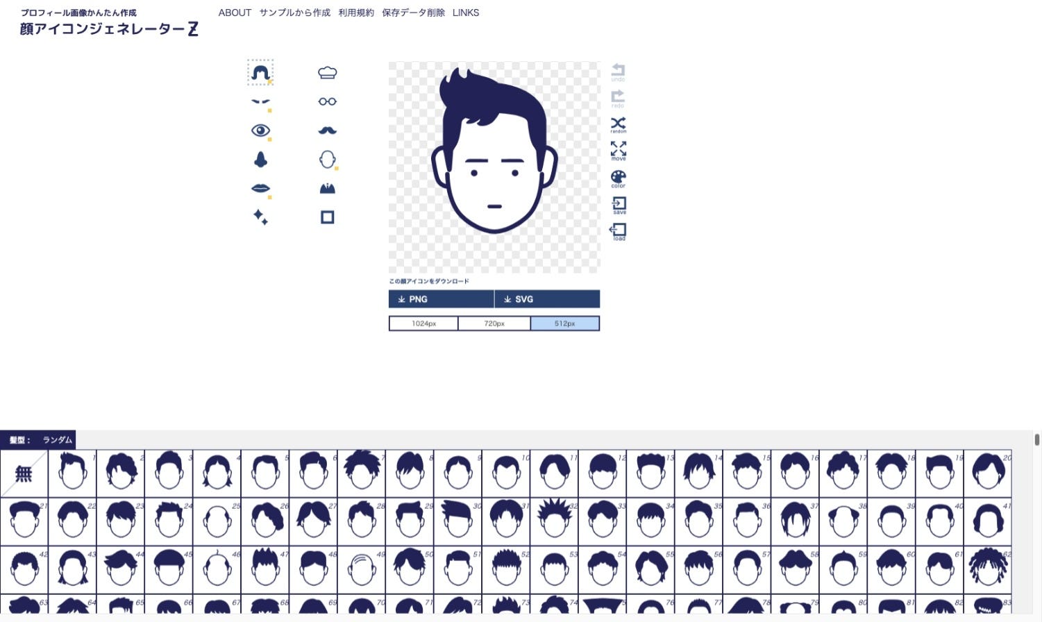 使用非常簡單,左邊的選單可以選擇頭髮、眼睛、鼻子、嘴巴、臉型