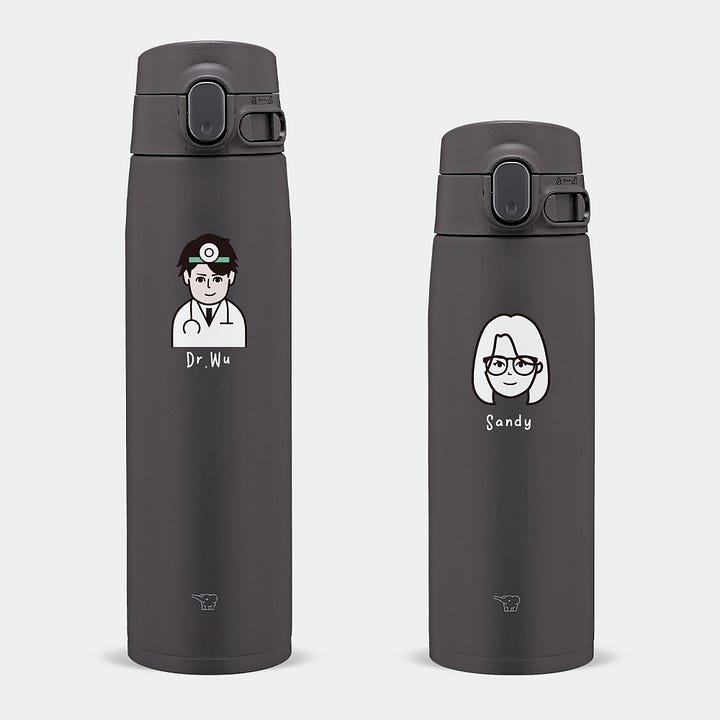 請注意:保溫瓶、隨行杯的製作時間為 5~7 個工作日,馬克杯的製作時間為 7~12 工作日,不包含運送與修改設計的時間,製作時間以確認設計後開始計算,訂單中如有不同類別的商品,製作時間以較長的為準。為了不耽誤您的時間,請主動與客服聯繫,並即早確認設計內容。雖然我們可以協助客製化人像,但還是建議自己操作比較符合你心目中的形象,而且更能表達自己的心意喔!